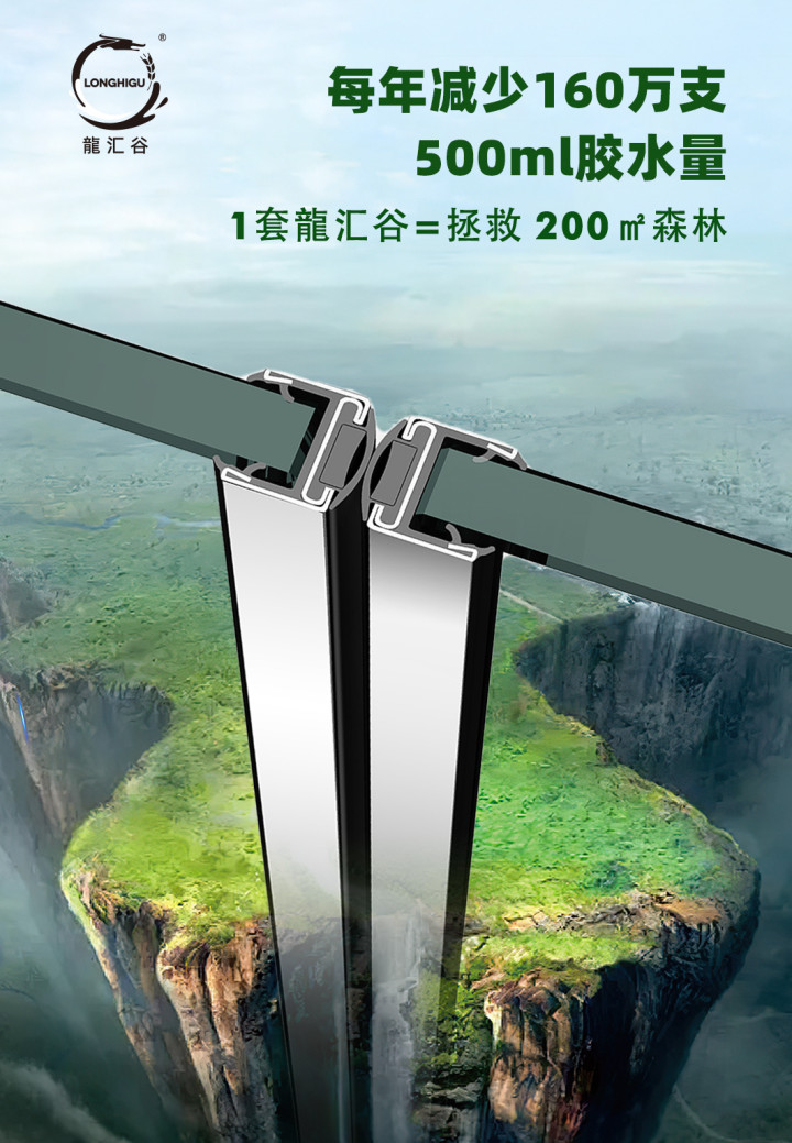 龍汇谷的免胶系统以具体数据践行环保理念。每套产品可节省约160万支500ml装硅酮胶,相当于保护200平方米森林资源,该型材已荣获LEED绿色建材认证。同时,依托军工级四维一体成型工艺,型材承重可达200公斤无变形;304不锈钢基材结合纳米级防护涂层,实现30年防腐防锈的坚实承诺。