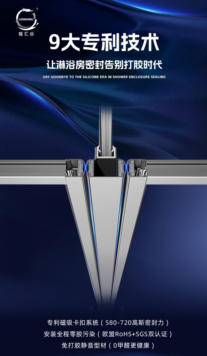 在卫浴供应链创新领域,密封工艺一直是影响产品质量、安装效率和成本控制的关键环节。龍汇谷推出的免胶不锈钢型材方案,以九项核心专利技术为支撑,为卫浴供应链带来了革命性的密封解决方案。