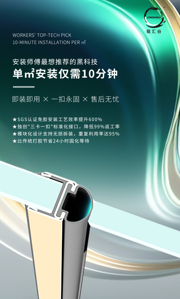 龍汇谷的技术突破不仅解决了传统工艺痛点,更以专利技术、环保效能、施工效率与全场景适用性,为行业提供了可复制的升级路径,重新定义了型材的价值边界。